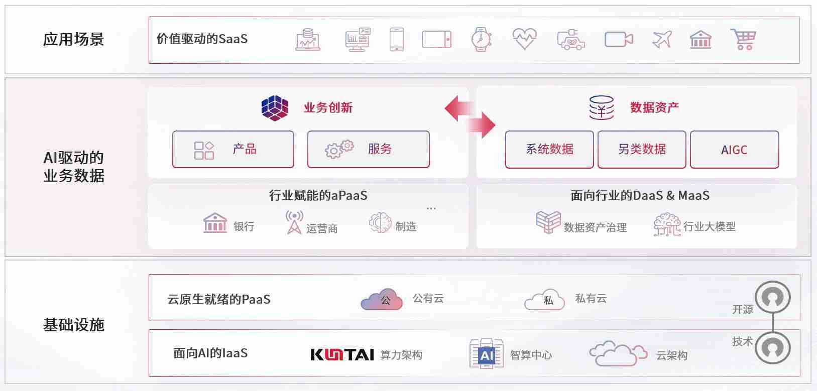 数字时代,,,,围绕企业数字化转型的关键要素,,NO钱包数码开创性的提出数云融合战略和技术体系框架,,,着力在云原生、、、数字原生、、、、AI原生和信创产业上架构产品和服务能力,,,为处在不同数字化转型阶段的快消零售、、、、汽车、、、金融、、、、医疗、、、政企、、教育、、、运营商等行业客户提供泛在的敏捷IT能力和融合的数据驱动能力,,构建跨界融合创新的数字业务场景和新业务模式,,,,助力企业级客户建立面向未来的核心能力和竞争优势,,,全面推动社会的数字化、、、、智能化转型升级。。。