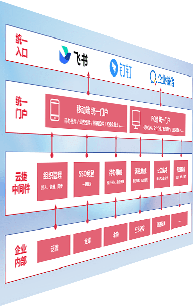 对协作平台提供支持服务,,,支持企业应用与协作平台对接,,,包含组织同步、、、消息集成、、待办集成等。。支持目前主流的协作平台:钉钉、、企微和飞书。。